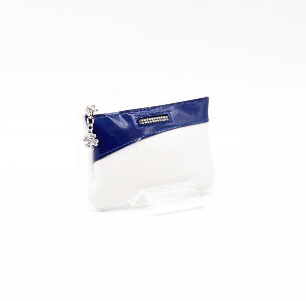 Amnisu fehér / lakk sötétkék ívelt egy cipzáras köves bőr kulcstartó c3002
