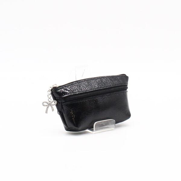 Amnisu fekete gyűrt lakk kettő cipzáras bőr kulcstartó b8007