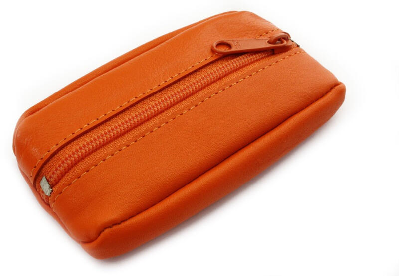 ARWEL bőr kulcstartó cipzáras zsebbel | narancssárga