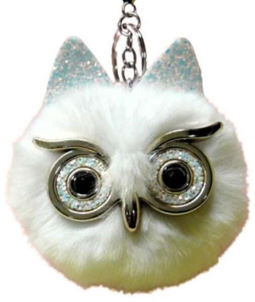 Baglyos kulcstartó fehér színben egyedi külsővel, amit táskadísz ként is használhat. Igazi kis pihe-puha szőrmók, fém pápaszemmel, flitteres fülekkel, fém kulcskarikával és plussz karabínerrel is felszerelve. Cuki ajándék lányoknak, nöknek, a baglyokat kedvelőknek