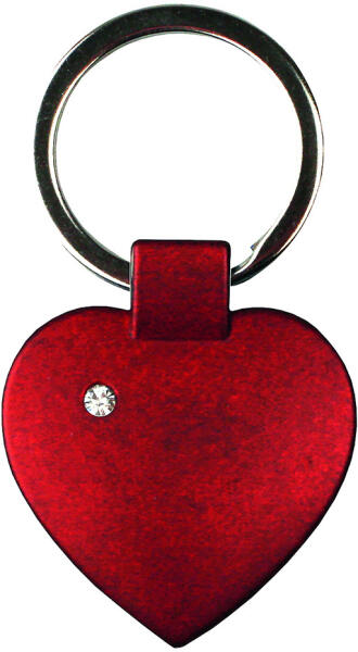 szív alakú fém kulcstartóacél kulcskarikávalstrassz berakássalkék, fekete, sárga, piros színben kapható