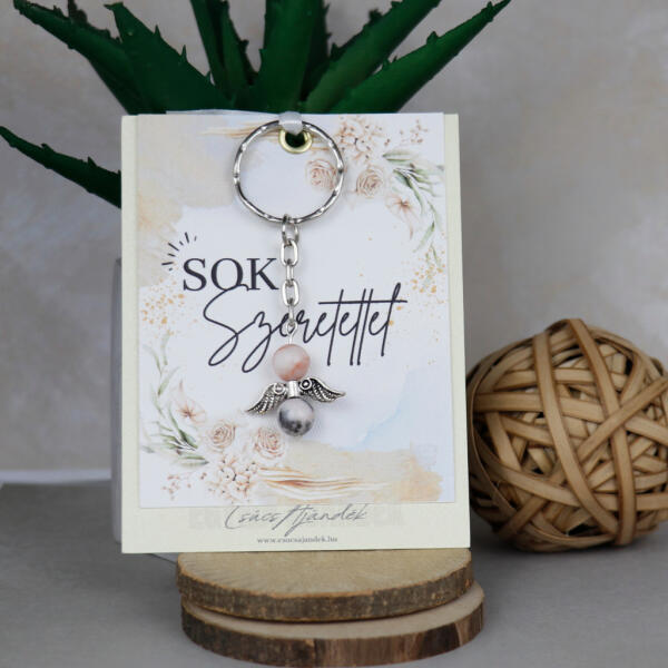 8 mm-es zebra jáspis ásványból készült angyalka kulcstartó.