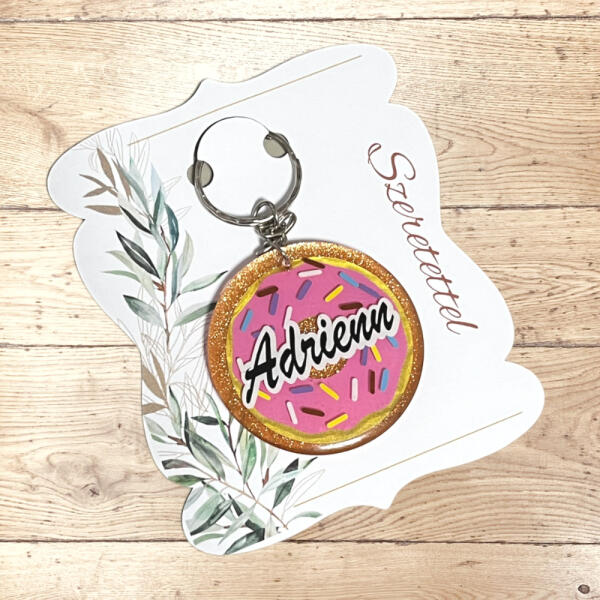 Műgyanta névre szóló kulcstartó fánk mintával