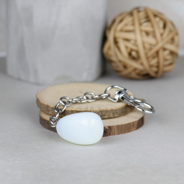 Opálüveg kulcstartó vagy táskadísz, karabínerrel.