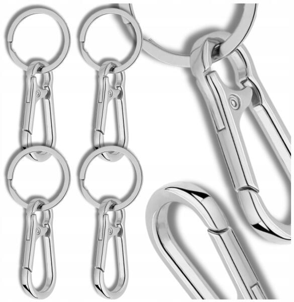 EdiBazzar Fém Kulcstartó Karabinerrel, Kulcskarikákkal, 4 db-os Szett (Metalowy Brelok Do Kluczy Karabińczyk Srebrny)ALLEGRO