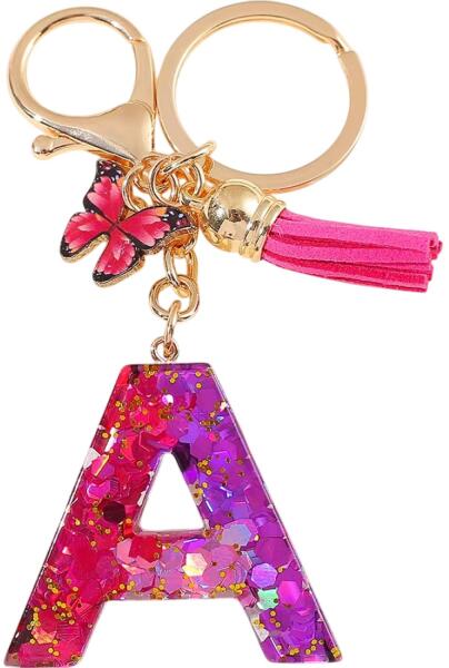 Fedezd fel a színek és csillogások varázsát minden részletben. Ezek a kulcstartók, amelyek az ábécé betűinek formáját öltik, ragyogó rózsaszín és lila színt kombinálnak arany csillámokkal, amelyek varázslatosan és energikusan hatnak. Minden betűt egy kifejező rózsaszín bojt és egy elegáns pillangó díszít – a könnyedség, szépség és változás szimbóluma.