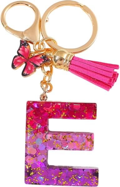 Fedezd fel a színek és csillogások varázsát minden részletben. Ezek a kulcstartók, amelyek az ábécé betűinek formáját öltik, ragyogó rózsaszín és lila színt kombinálnak arany csillámokkal, amelyek varázslatosan és energikusan hatnak. Minden betűt egy kifejező rózsaszín bojt és egy elegáns pillangó díszít – a könnyedség, szépség és változás szimbóluma.