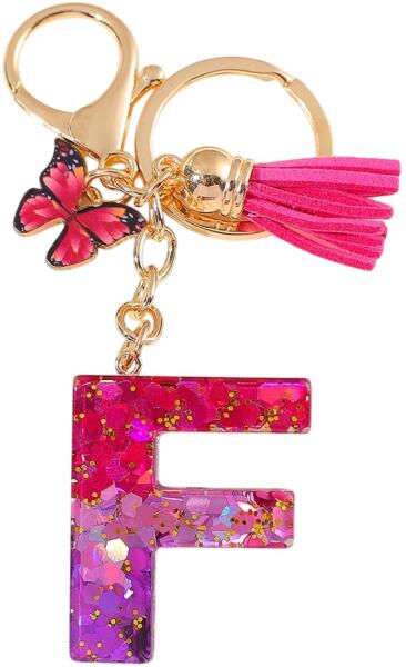 Fedezd fel a színek és csillogások varázsát minden részletben. Ezek a kulcstartók, amelyek az ábécé betűinek formáját öltik, ragyogó rózsaszín és lila színt kombinálnak arany csillámokkal, amelyek varázslatosan és energikusan hatnak. Minden betűt egy kifejező rózsaszín bojt és egy elegáns pillangó díszít – a könnyedség, szépség és változás szimbóluma.