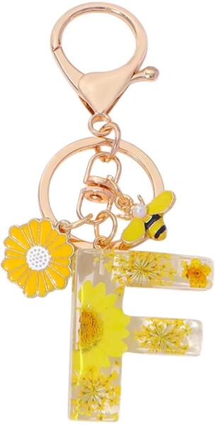 Elbűvölő kulcstartók az ábécé betűivel, amiket finom szárított virágok díszítenek. Azok számára ideális, akik a stílusos és mégis személyre szabott kiegészítőket szeretik. Mindegyik betű egyedi - ragyogó sárga virág és méhecske medállal díszítettek, amelyek Každé písmeno je jedinečné – ozdobené žiarivo sárga virágokkal és méhecskével, amelyek gyengédnek, mégis frissnek és játékosnak tűnnek.