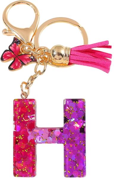 Fedezd fel a színek és csillogások varázsát minden részletben. Ezek a kulcstartók, amelyek az ábécé betűinek formáját öltik, ragyogó rózsaszín és lila színt kombinálnak arany csillámokkal, amelyek varázslatosan és energikusan hatnak. Minden betűt egy kifejező rózsaszín bojt és egy elegáns pillangó díszít – a könnyedség, szépség és változás szimbóluma.