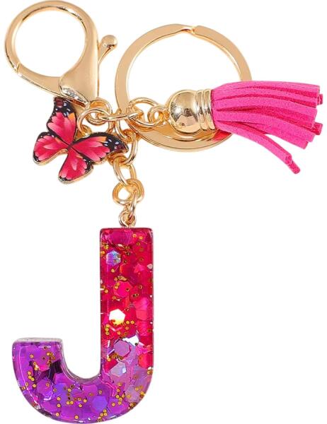 Fedezd fel a színek és csillogások varázsát minden részletben. Ezek a kulcstartók, amelyek az ábécé betűinek formáját öltik, ragyogó rózsaszín és lila színt kombinálnak arany csillámokkal, amelyek varázslatosan és energikusan hatnak. Minden betűt egy kifejező rózsaszín bojt és egy elegáns pillangó díszít – a könnyedség, szépség és változás szimbóluma.