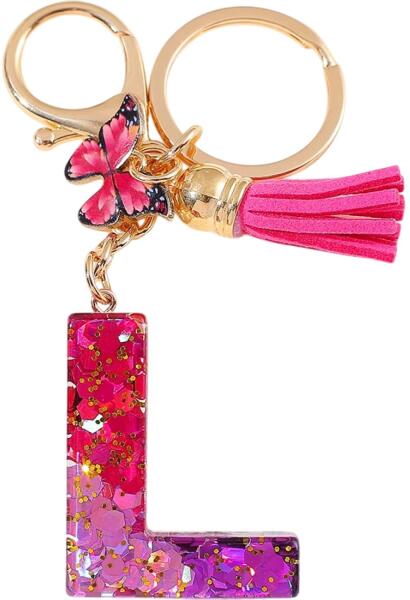 Fedezd fel a színek és csillogások varázsát minden részletben. Ezek a kulcstartók, amelyek az ábécé betűinek formáját öltik, ragyogó rózsaszín és lila színt kombinálnak arany csillámokkal, amelyek varázslatosan és energikusan hatnak. Minden betűt egy kifejező rózsaszín bojt és egy elegáns pillangó díszít – a könnyedség, szépség és változás szimbóluma.