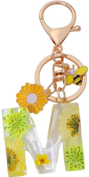 Elbűvölő kulcstartók az ábécé betűivel, amiket finom szárított virágok díszítenek. Azok számára ideális, akik a stílusos és mégis személyre szabott kiegészítőket szeretik. Mindegyik betű egyedi - ragyogó sárga virág és méhecske medállal díszítettek, amelyek Každé písmeno je jedinečné – ozdobené žiarivo sárga virágokkal és méhecskével, amelyek gyengédnek, mégis frissnek és játékosnak tűnnek.