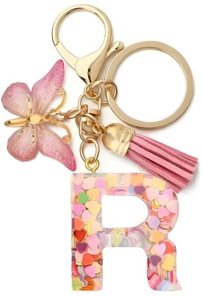 Tökéletes kiegészítő a kulcscsomóra vagy a hátizsákra, retikülre. Egy személyre szóló ajándék, mert az ábécé minden betűjét megtalálja közöttük. A kulcstartó kombinálja a praktikusságot a személyes stílussal és csodás lehetőség az individualitás kifejezésére. A betű medál belsejében színes szívecskekonfettik találhatók. Az arany színű fém karabíner és kulcstartókarika fényűző kialakítású és amilyen szép, annyira strapabíró is. A kulcstartót a betű medál mellett pillangó és bojtocska medál is díszíti, amik még bájosabbá teszik.
