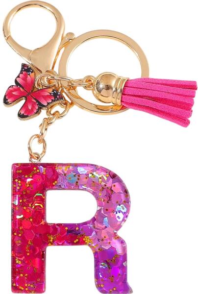 Fedezd fel a színek és csillogások varázsát minden részletben. Ezek a kulcstartók, amelyek az ábécé betűinek formáját öltik, ragyogó rózsaszín és lila színt kombinálnak arany csillámokkal, amelyek varázslatosan és energikusan hatnak. Minden betűt egy kifejező rózsaszín bojt és egy elegáns pillangó díszít – a könnyedség, szépség és változás szimbóluma.