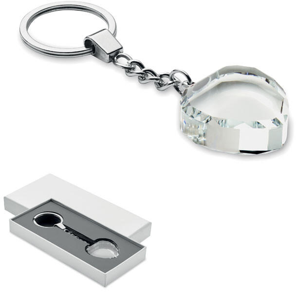 Szív alakú üveg kulcstartó. Ajándékdobozban.