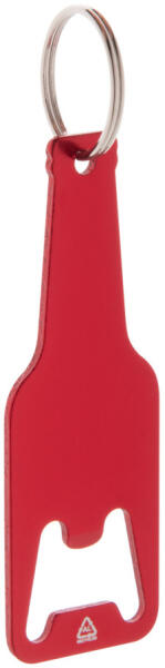 Palack formájú, újrahasznosított alumínium üvegnyitó fém karikával.