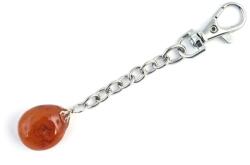 Szabálytalan, kavics formájú karneolból készített kulcstartó. A kövek felülete a gondos csiszolás ellenére apróbb felületi hibákat tartalmazhat. A karneolt a fém alkatrészhez kétkomponensű ragasztóval ragasztják hozzá. Az alkatrészek antiallergének. A kövek 2-3 cm nagyságúan, a kulcstartó 8-9 cm hosszú. A küldött kulcstartó színárnyalatban és formában kisebb mértékben eltér a képen láthatótól.   Csillagjegy : Kos, Bika, Ikrek, Oroszlán, Szűz, Vízöntő Csakra : gyökércsakra, szakrális csakra