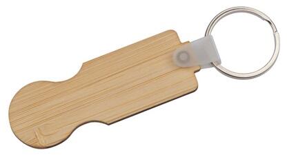 Bevásárlókocsi érme és kulcstartó, mely bambuszból készült. Termék mérete:Méret: 9,5 x 2,3 x 0,2 cm Emblémázását, feliratozását vállaljuk.