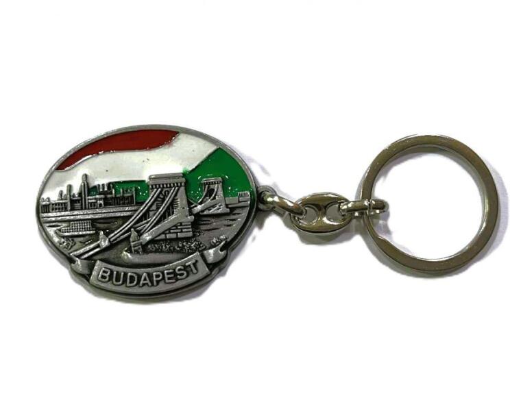 Budapest feliratú kulcstartó, Lánchíd és Parlament motívummal.