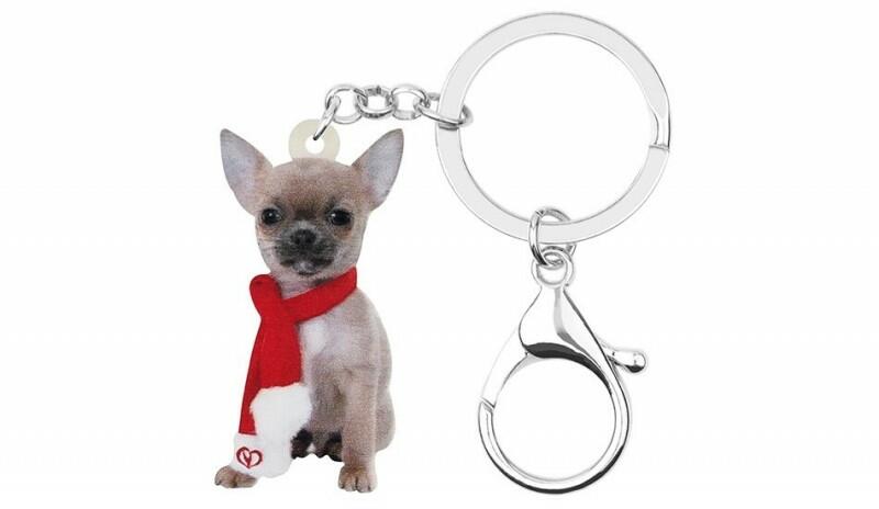 Akril-fém kutyás kulcstartó - Csivava (Chihuahua) Méret: 4,4cm x 2,3cm Súly: 12,4g