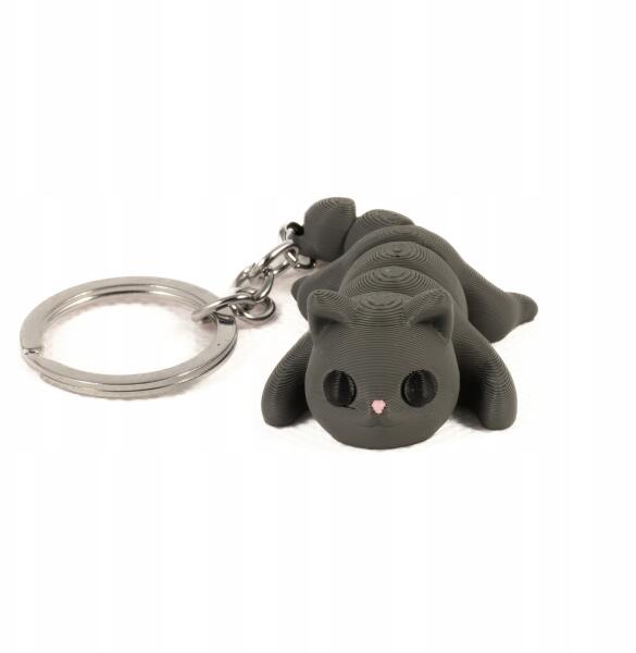 Kulcstartó gyerekeknek állatok 3D nyomtatás színes cica sötét szürke flexibilis briliáns (kot szary leżący)