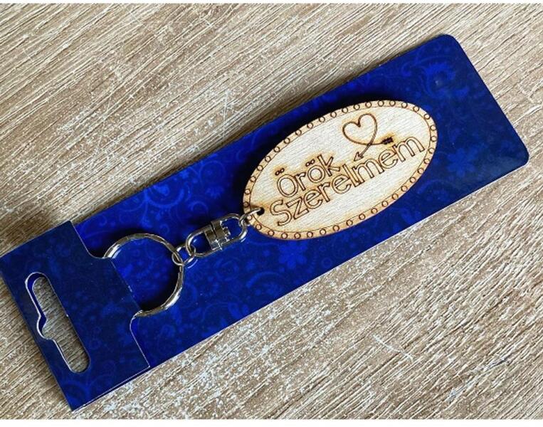 Kulcstartó - Gravírozott fa - Örök szerelmemMéret: 6,5 x 3,5 cm Anyaga: FaFelirat: Örök szerelmem