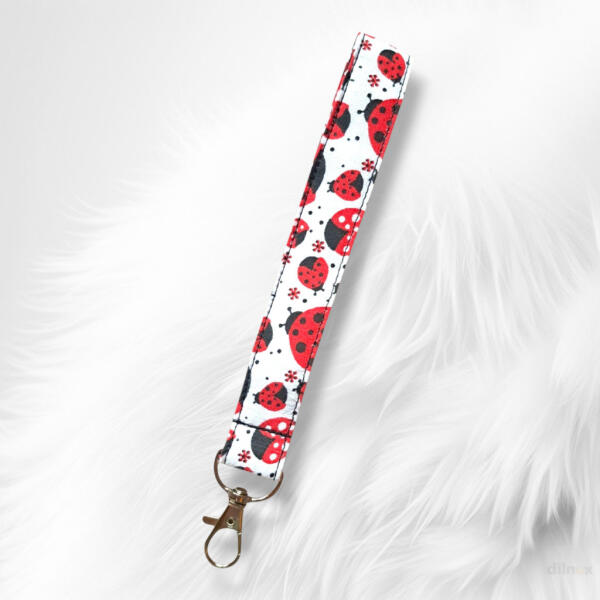 Kulcstartó, táskadísz és csuklópánt katica mintával