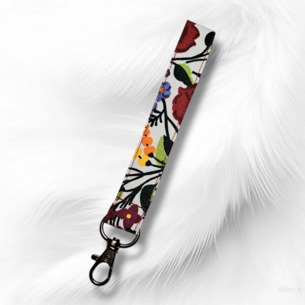 Kulcstartó, táskadísz és csuklópánt színes virágmintákkal
