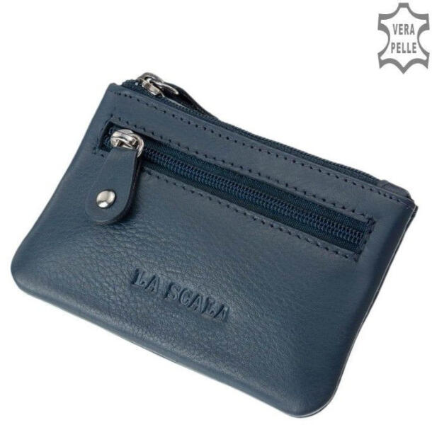 La Scala valódi bőr kulcstartó sötétkék cipzáras (sb-1589-blue)