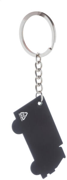Teherautó alakú, újrahasznosított rozsdamentes acél kulcstartó gumírozott felülettel. Speciális bevonattal tükögravírozáshoz.