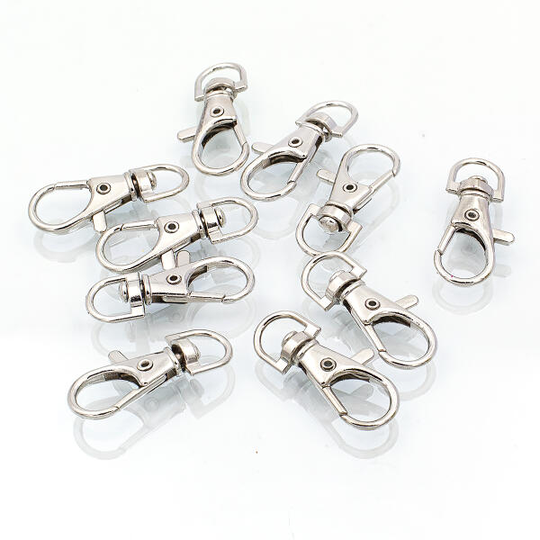 Mixform Forgatható karabiner-Lobster kapocs, Vas, Platina, 37x14x7mm, 10db (13WB28269)