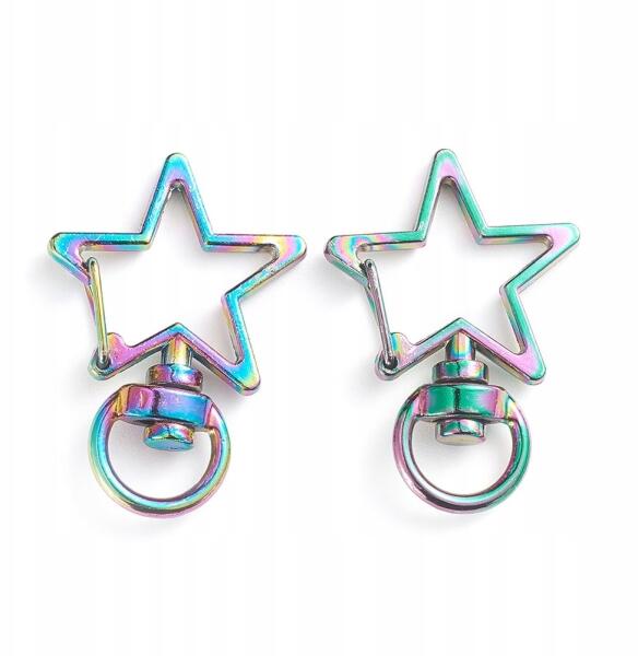 MIXFORM Karabiner kapocs- Lobster Forgatható Szivárvány csillag 34x24x5mm 2db (13WB28281)