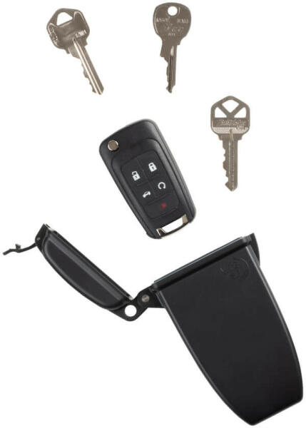 A kulcsok biztonságos elrejtésére szolgáló, mágneses HideOut® tároló, teljes egészében vízálló, és neodímium mágnesekkel vagy öntapadó hátlapos fémlemez segítségével biztonságosan elrejthető a kocsi alatt, a terasz alatt vagy a ház oldalán. Méret: 51 mm x 90 mm.