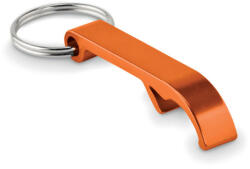 Újrahasznosított alumíniumból készült fényes kulcstartó üvegnyitóval.