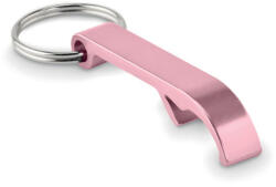 Újrahasznosított alumíniumból készült fényes kulcstartó üvegnyitóval.