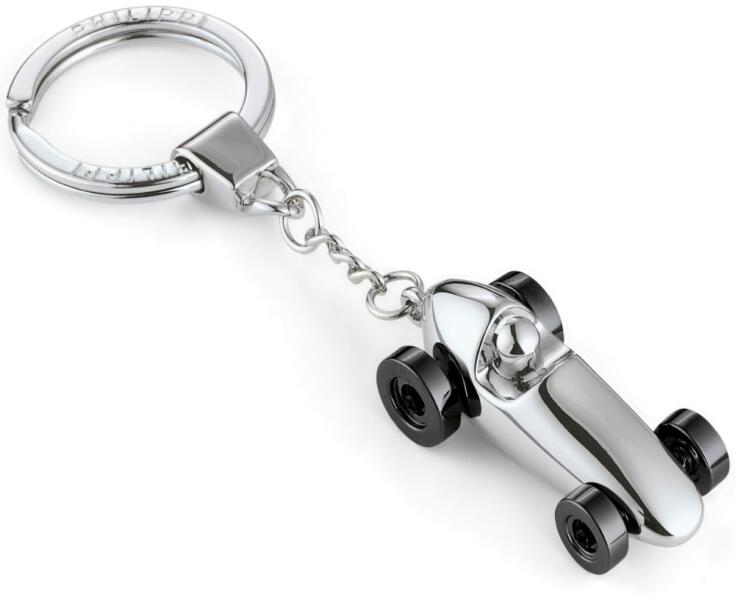 A SILBERPFEIL kulcstartó tökéletes ajándék lesz minden autóverseny- és Forma-1-rajongónak, és mindenkinek, aki szereti az autókat. A fekete kerekű kis versenyautó a szabadságra vagy a bátorságra való felhívást is szimbolizálhatja. A kulcstartó medál tükörpolírozott nikkelből készült, és a felesleges várakozási időkben figyelemelterelő eszközként, stresszes pillanatokban pedig relaxációs eszközként is szolgálhat.