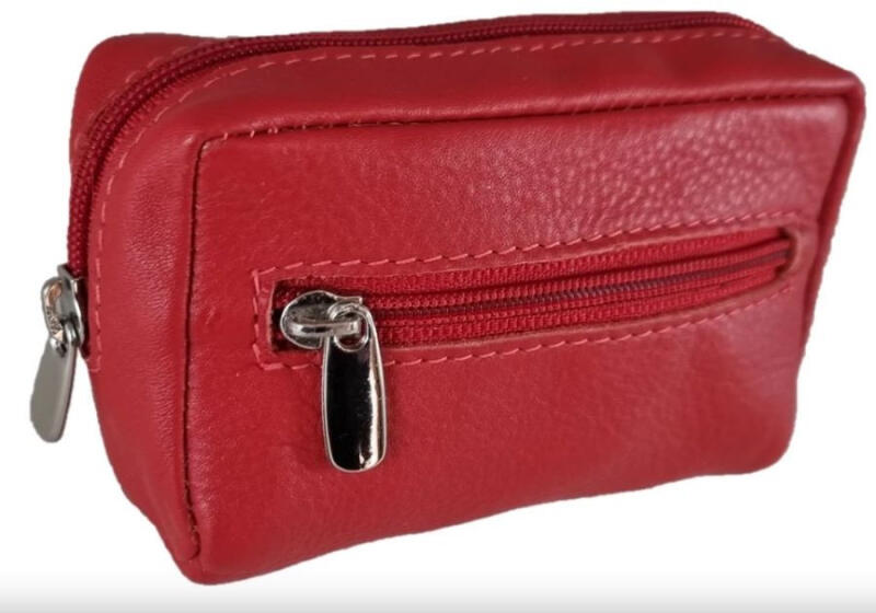 Kulcstartó puha nappa bőrből, piros színben. A fő cipzáras részben 1 db fém kulcstartó karika van, melyre a kulcsokat lehet rácsatolni. Egy kis cipzáras zseb van a kulcstartó elején. Prémium minőségű valódi nappa bőrből készült.