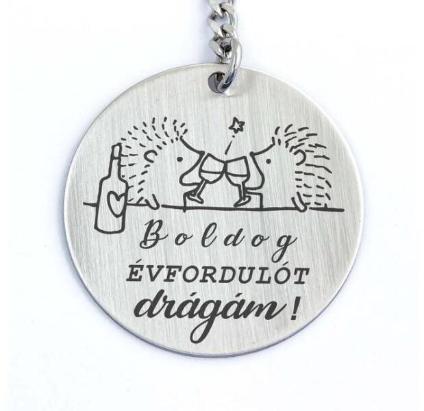 " Boldog évfordulót Drágám! " feliratos acél kör medálos kulcstartó