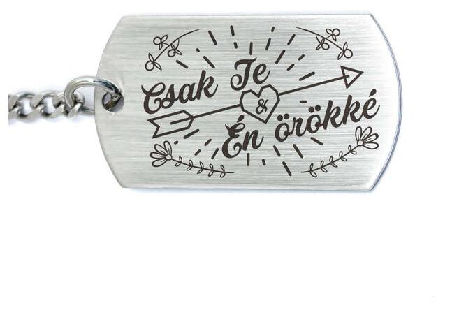 A számotokra állítottunk össze egy kedves meglepetést! Létezik az a mindent elsöprő, mindent felülmúló érzés, amikor az ember azt érzi, csak Te és Én, örökre, bármilyen helyzetben, akár az egész világ ellen... A szerelem... Fantasztikus, megmagyarázhatatlan, időben és térben korlátozhatatlan. Te is szerelmes vagy? Akkor ajándékötletünk hozzád/hozzátok passzol! Lepd meg a szeretett személyt ezzel a kulcstartóval összetartozásotok jeleként. Ezt a nagyszerű ajándék ötlet ünket egy gravírozott acél medál , és egy acél kulcstartó alk ot j a . A kulcstartót egy szögletes alakú 32×20 mm méretű elegáns acél medál díszíti, amit lézer gravírozunk . A nemesacél más néven orvosi fém medál nem allergizál , ezért fémre érzékenyeknek is bátran ajánljuk . Mindemellett az acél medál nagyon strapabíró , nem kopik , nem színeződik el , rendkívül hosszú ideig megőrzi eredeti szépségét .