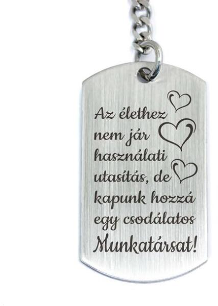 " Az élethez nem jár használati utasítás, de kapunk hozzá egy csodálatos Munkatársat! " feliratos acél medálos kulcstartó