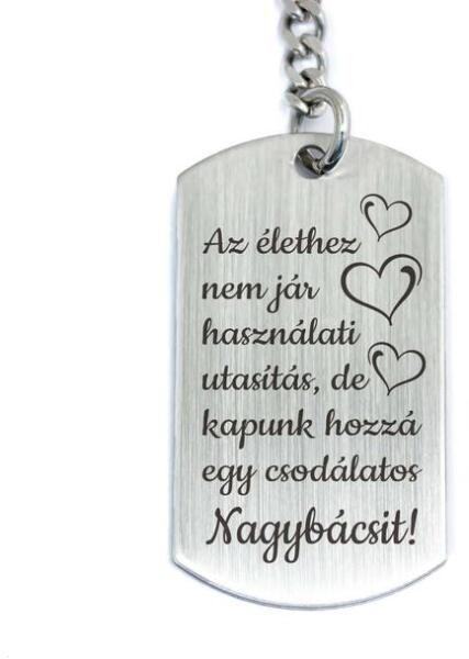" Az élethez nem jár használati utasítás, de kapunk hozzá egy csodálatos Nagybácsit! " feliratos acél medálos kulcstartó