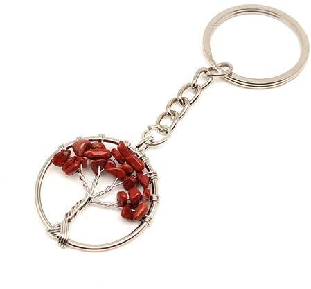 Életfa drótos Jáspis vörös kulcstartó 3 cm – Földelő erő, minden nap kéznélA vörös jáspis meleg, mély árnyalatával és természetes rajzolataival már első pillantásra magára vonja a figyelmet. Ezt a kb. 3 cm-es ásványt kézműves jellegű, finom drótfonnás díszíti, amely Életfa motívummal öleli körbe a követ. A részletgazdag drótmunka és a simára csiszolt kő harmonikus párost alkot; tartós kulcskarikával és lánccal érkezik, így kulcstartóként és táskadíszként is azonnal használható....