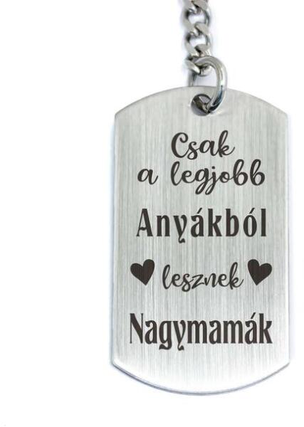 "Csak a legjobb anyákból lesznek nagymamák" feliratos acél szögletes medálos kulcstartó A számotokra állítottunk össze egy kedves meglepetést!Aki a legjobb süteményeket süti messze e világon, aki mindig csillogó szemmel fogad, akinek végigfut a könnycsepp az arcán, mikor az unoka szaval. A Nagymamák már csak ilyenek. Köszönd meg neki kulcstartónkkal, hogy van nektek!