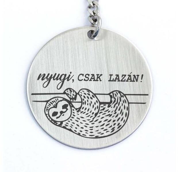 Számotokra állítottunk össze egy kedves meglepetést! Óriási pörgésben telnek a mindennapok. Sokszor elfelejtkezünk róla, hogy amíg hajszoljuk a tökéletességet, egyre görcsösebbek leszünk! Le a stresszel! Lehet ezt másként is csinálni, gondoljatok csak a lajhárra! Válaszd ezt a kulcstartót olyan valaki számára, akire ráférne egy kis lazítás! Ezt a nagyszerű ajándék ötlet ünket egy gravírozott acél medál , és egy acél kulcstartó alk ot j a . A kulcstartót egy kör alakú 42 mm méretű elegáns acél medál díszíti, amit lézer gravírozunk . Az acél medál nagyon strapabíró , nem kopik , nem színeződik el , rendkívül hosszú ideig megőrzi eredeti szépségét .