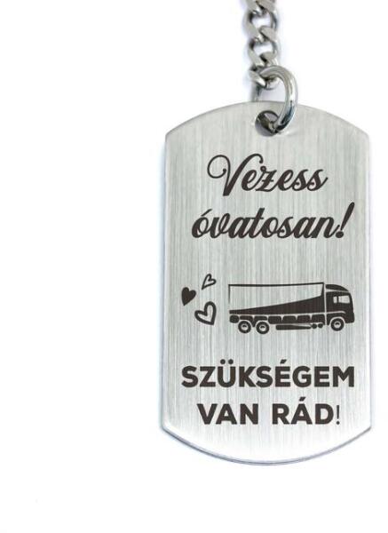 Számotokra állítottunk össze egy kedves meglepetést! Univerzális ajándék ez a kulcstartó, melynek egyaránt örülhet családtag, barát, kolléga, vagy bárki, aki az utakon közlekedik. Fontosnak lenni valakinek óriási energiát adhat. Sokszor ugyan nehéz ezt kimondani. Meglepetésünkkel ebben is tudunk segíteni neked. A Vezess óvatosan kollekcióban autósok, buszosok, kamionosok, sőt bringások számára is készítettünk szívhez szóló változatot. Ezt a nagyszerű ajándék ötlet ünket egy gravírozott acél medál , és egy acél kulcstartó alk ot j a . A kulcstartót egy téglalap alakú 42 x 24 mm méretű elegáns acél medál díszíti, amit lézer gravírozunk . Az acél medál nagyon strapabíró , nem kopik , nem színeződik el , rendkívül hosszú ideig megőrzi eredeti szépségét .