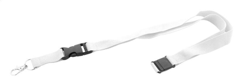 RPET poliészter nyakpánt levehető fém karabinerrel és biztonsági csattal.
