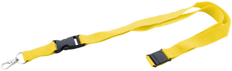 RPET poliészter nyakpánt levehető fém karabinerrel és biztonsági csattal.
