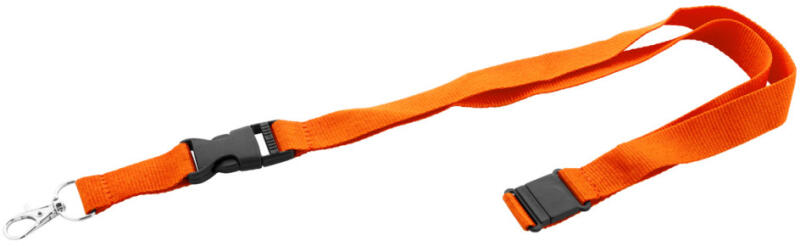 RPET poliészter nyakpánt levehető fém karabinerrel és biztonsági csattal.