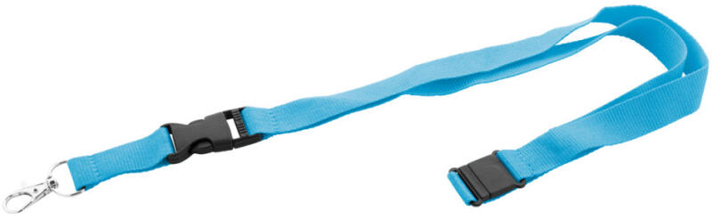 RPET poliészter nyakpánt levehető fém karabinerrel és biztonsági csattal.